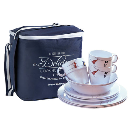 Med Marine Business Regatta Startpakke servicesett får du et praktisk og stilig sett til både hverdag og fest. Dette settet i 16 deler er ideelt for både innendørs og utendørs bruk, og dets sklisikre ringdesign sørger for at alt holder seg på plass, selv når bølgene er høye.