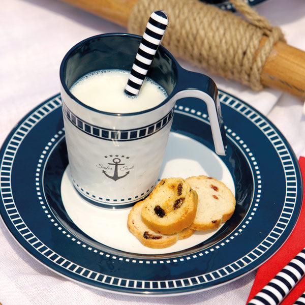 Opplev den perfekte kombinasjonen av stil og holdbarhet med Marine Business Sailor Soul desserttallerken. Denne tallerkenen i marineblått og hvitt design setter et eksklusivt nautisk preg på bordet ditt, enten du er om bord i båten eller hjemme.