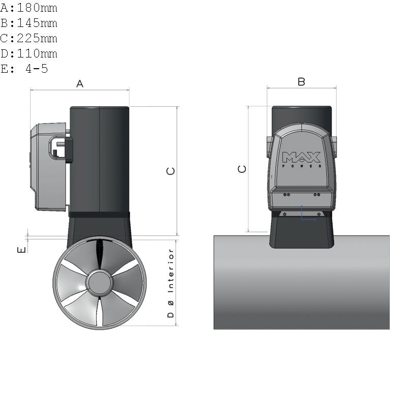 Max Power, baugpropell 25 Kompositt/Mono, 12V, 2,5 HK, 17-30 fot, 125 A, 28 kg, Ø 110 mm