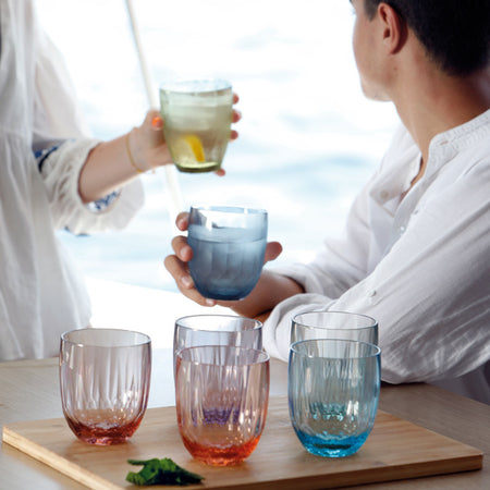 Glassene er designet med tanke på både funktionalitet og æstetik. De forskellige farver gør det nemt for gæster at genkende deres eget glas, hvilket reducerer risikoen for forveksling under sammenkomster.
