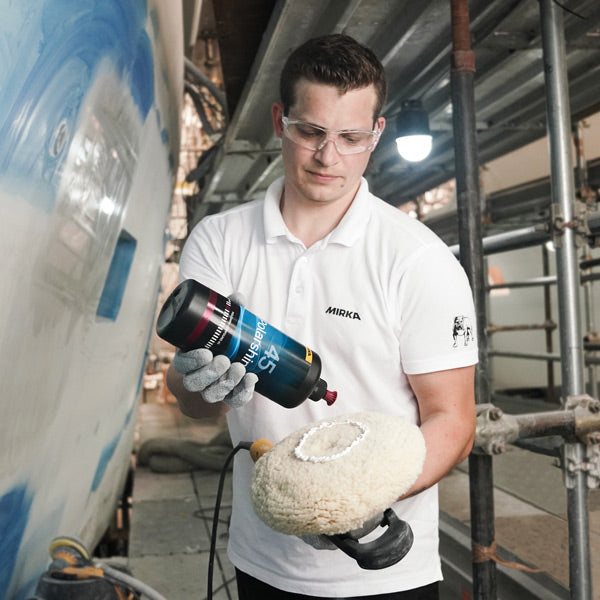 Mirka Polarshine 45 er et groft, hurtigtarbejdende polermiddel på 250 ml, der giver en perfekt finish og højglans. Det er specielt udviklet til hårde overflader, især inden for bådindustrien, og kan anvendes ved sliberidser fra P600 og finere.