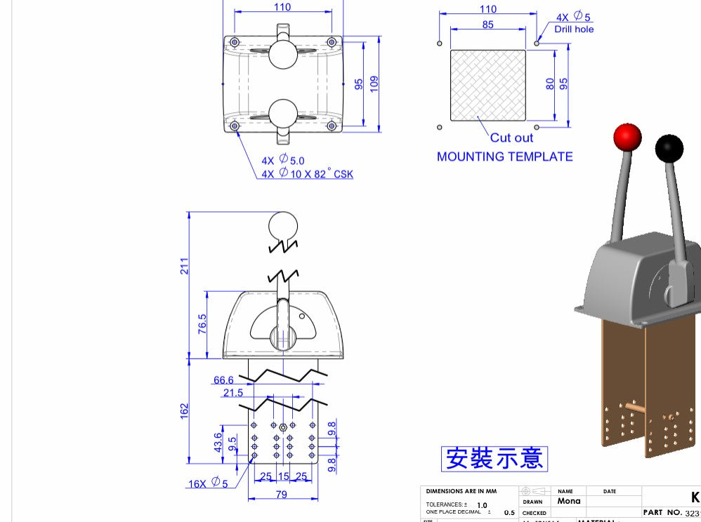 - Funksjon: Enkel funksjonsboks med separate håndtak for gass og gir