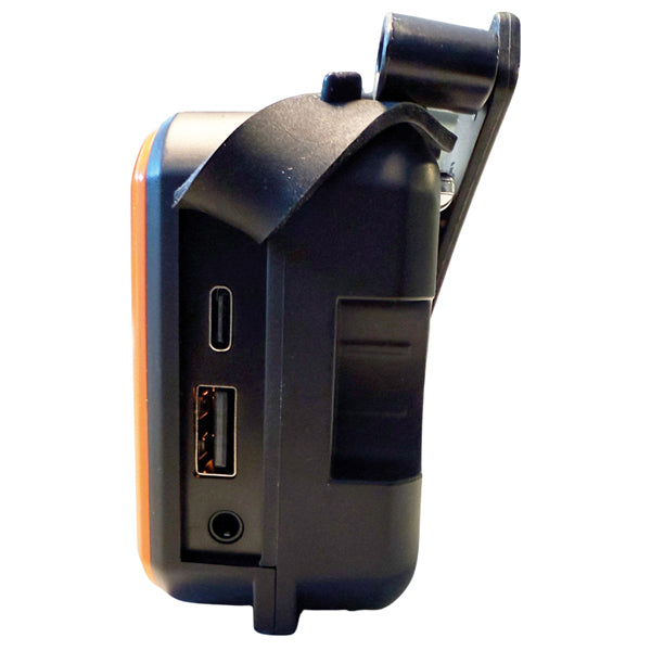 Radioen fungerer som en komplet nødløsning med integreret 5000 mAh batteri, der både kan drive radioen og fungere som powerbank til opladning af mobiltelefoner. Den kraftige LED-lygte på 400 lumen sikrer god belysning, mens det separate læselys giver ekstra funktionalitet.