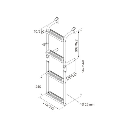 Badestigen fra Nuova Rade kombinerer funksjonalitet og sikkerhet i et elegant design. Laget av polert AISI 316 rustfritt stål, er denne badestigen ideell for både private og kommersielle maritime miljøer. Med sin justerbare fot og sammenleggbare design sikrer den enkel tilgang til vannet samtidig som den er enkel å oppbevare.