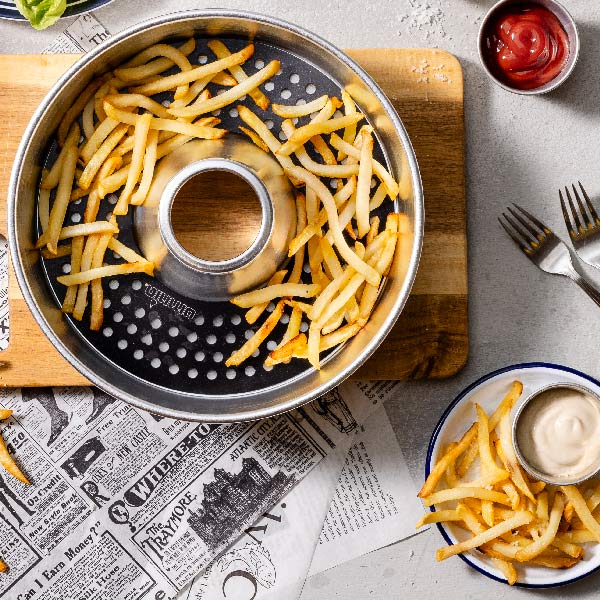 Det keramiske nonstick-belegget sørger for at maten glir lett av, mens de små hullene i tallerkenen hindrer at maten faller igjennom. Produsert av høykvalitets rustfritt stål (AISI 304) og belagt på begge sider med en 100 % PTFE-fri keramisk overflate, oppfyller denne ovnsplaten både FDA og LFGB standarder.