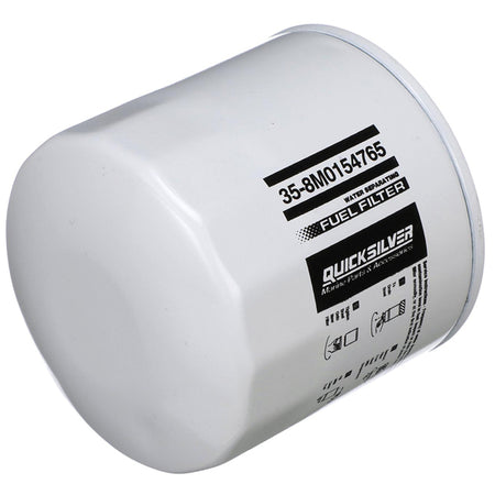 Quicksilver 8M0154765 er et vandadskillende brændstoffilter designet til marinemotorer fra 115 hk og op. Dette filter fungerer som erstatningsdel til flere forskellige motortyper og sikrer effektiv filtrering af brændstof for at beskytte din motors levetid.