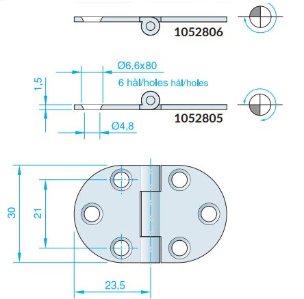 Roca, Hinge RF 47x30mm, revers, AISI 304
