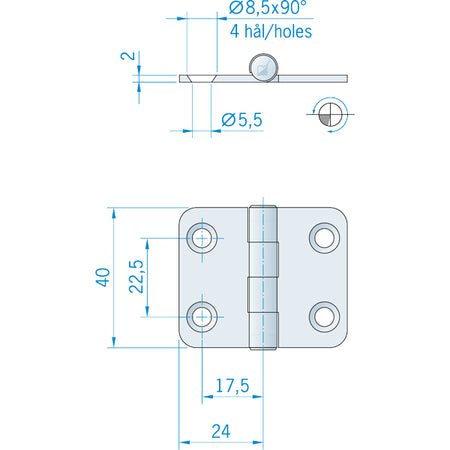 Roca, Hinge RF, 48x40mm, AISI 316