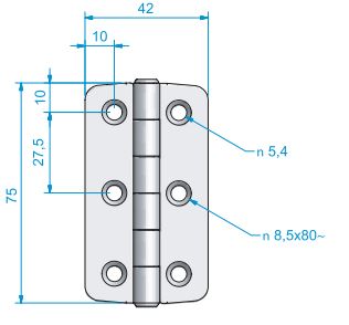 Roca, Hinge RF, AISI 316, 42x75mm