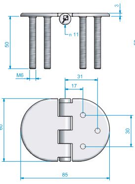 Roca, Hinge RF m/faste M6 skruer 60x85mm, revers, AISI 316
