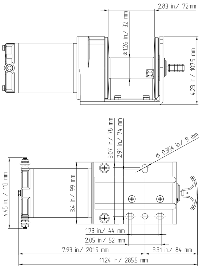 - Dimensjoner (LxBxH): 285,5 x 113 x 107,5 mm