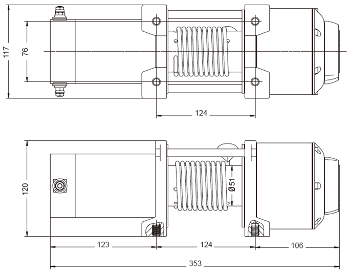 Rock, Elektrisk tilhengervinsj RP3500 m/tau 3,1 HK (2,3 kW) 1589 kg, 12 V, IP67