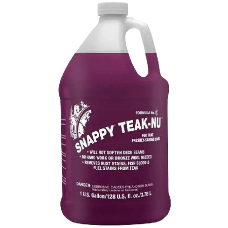 Snappy Teak Cleaner No. 1 er en anerkjent løsning for rengjøring av teakdekk som effektivt fjerner flekker, merker og skitt uten å skade treverket. Den unike rengjøringsformelen sikrer at teakdekket ditt gjenvinner sin vakre gylne farge, noe som gjør det til et ideelt valg for både båt- og hageeiere.