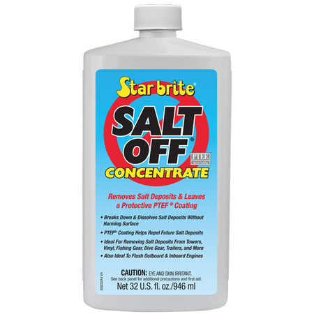 Star Brite Salt Off etterlater et beskyttende belegg av spesielle polymerer som forhindrer dannelsen av fremtidige avleiringer. Det er en effektiv løsning for bruk på motorer, dykker- og fiskeutstyr og alle metalloverflater.