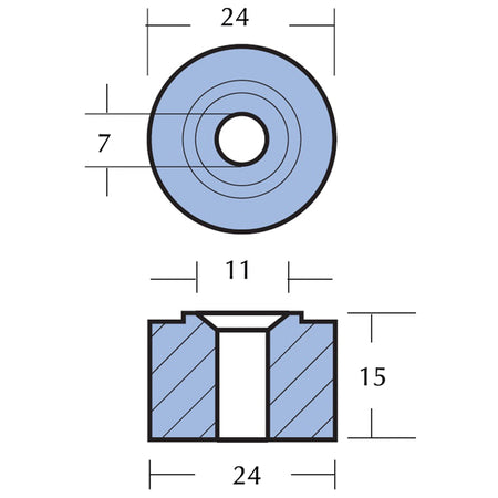 Tecnoseal, sink anode Honda 8-50 HK til 2007, Ø 24,0 mm, 12155-ZV4-A00