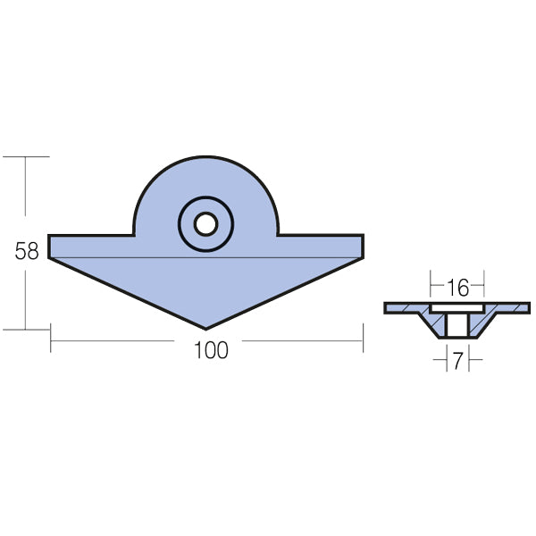 Tecnoseal, sink anode Yamaha 9,9 & 25 HK, 6E8-45251-02, 101 mm x 60 mm, Ø 7 mm, 0,15 kg