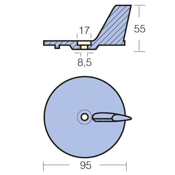 Tecnoseal, Sinkanode Yamaha 20-25-30 HK, Ø: 91,5 mm, Hull Ø: 8,5 mm, Høyde: 55 mm, Original nr.: 664-45371-01