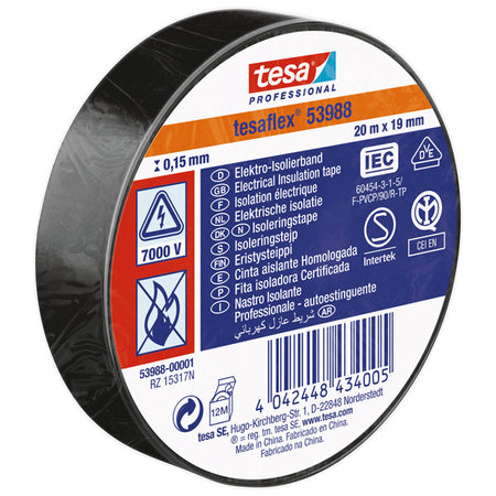 Tesa, Isolasjonstape 19mm, Sort, 20m, S-merket, maks 90º C, IEX-godkjent