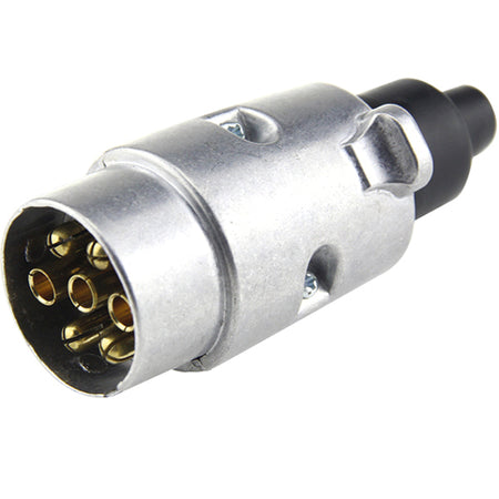 Denne 7-pinners metalltilhengerkontakten er designet for å sikre en stabil og sikker tilkobling til 12V-systemet ditt. Med en robust konstruksjon er denne hannkontakten ideell for både campingvogner og tilhengere, noe som gjør den til en uunnværlig del av utstyret ditt.
