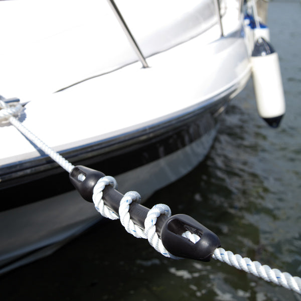 Fjæren er laget av EPDM-gummi, som gir høy motstand mot UV-stråler og værpåvirkninger. De integrerte gripekjevene i sort polyamid forhindrer vridning av linen, noe som øker fortøyningens holdbarhet og pålitelighet.