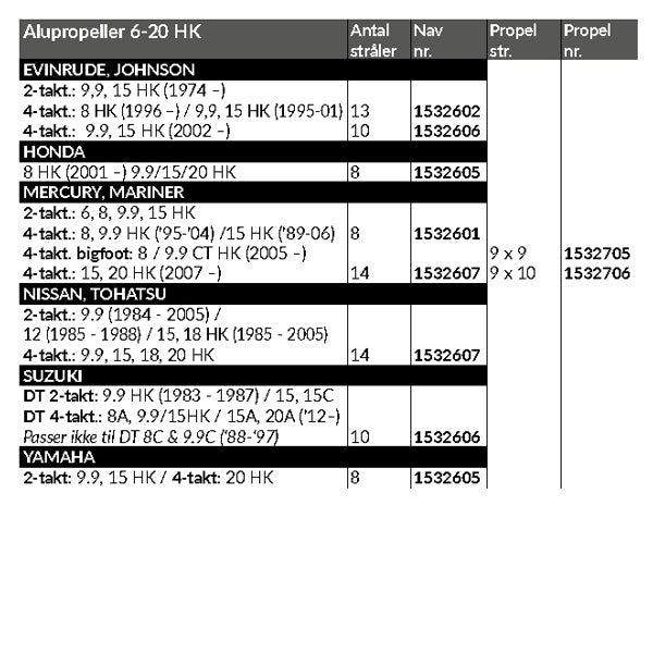 - YAMAHA: 2-takts: 9,9, 15 HK, 4-takts: 20 HK