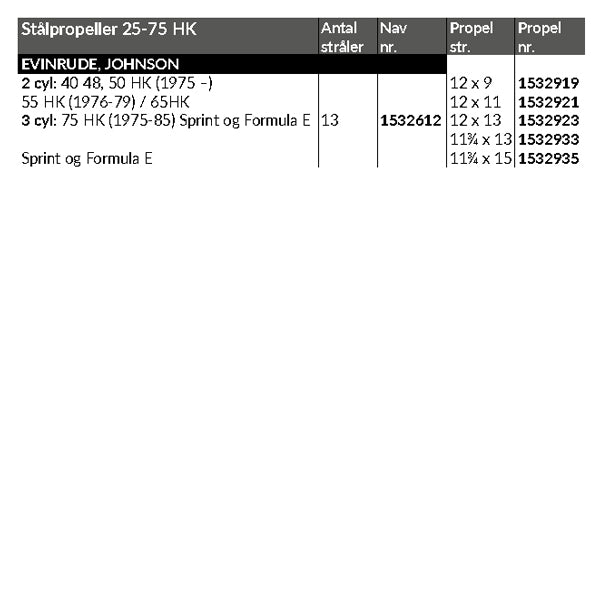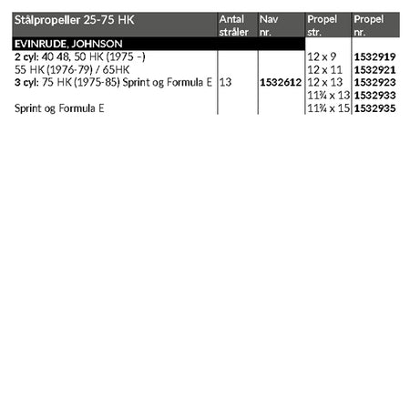 - EVINRUDE, JOHNSON: 2 syl: 40, 48, 50 HK (1975 -), 55 HK (1976-79), 3 syl: 75 HK (1975-85) Sprint og Formel E