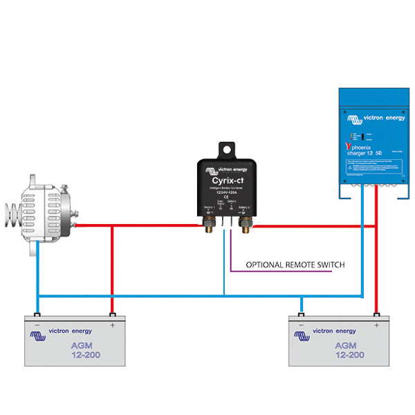 Med Victron Cyrix-CT mikroprosessorrelé får du en pålitelig løsning for å unngå spenningstap ved lading av flere batteribanker. Dette intelligente reléet er designet for å sikre at batteriene dine alltid er i optimal stand, samtidig som det tilbyr en praktisk startassistansefunksjon. Du kan enkelt koble til batteribankene i opptil 30 sekunder ved nødstart, noe som gir deg trygghet når du er på vannet.