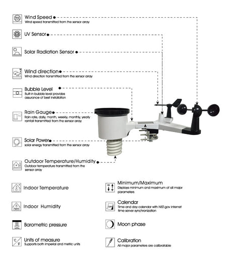 Værstasjonen måler temperatur, luftfuktighet, vindretning, vindhastighet og nedbør, noe som gjør den til den perfekte løsningen for både hobbymeteorologer og de som rett og slett ønsker å være forberedt på været. Du kan også lagre minimums- og maksimumsverdier og stille inn alarmer for spesifikke forhold.